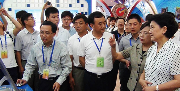 時(shí)任中央政治局委員、中央書記處書記,中宣部部長劉奇葆在江蘇省委領(lǐng)導(dǎo)陪同下考察鳳凰創(chuàng)壹開發(fā)的VR仿真教學(xué)培訓(xùn)系統(tǒng)
