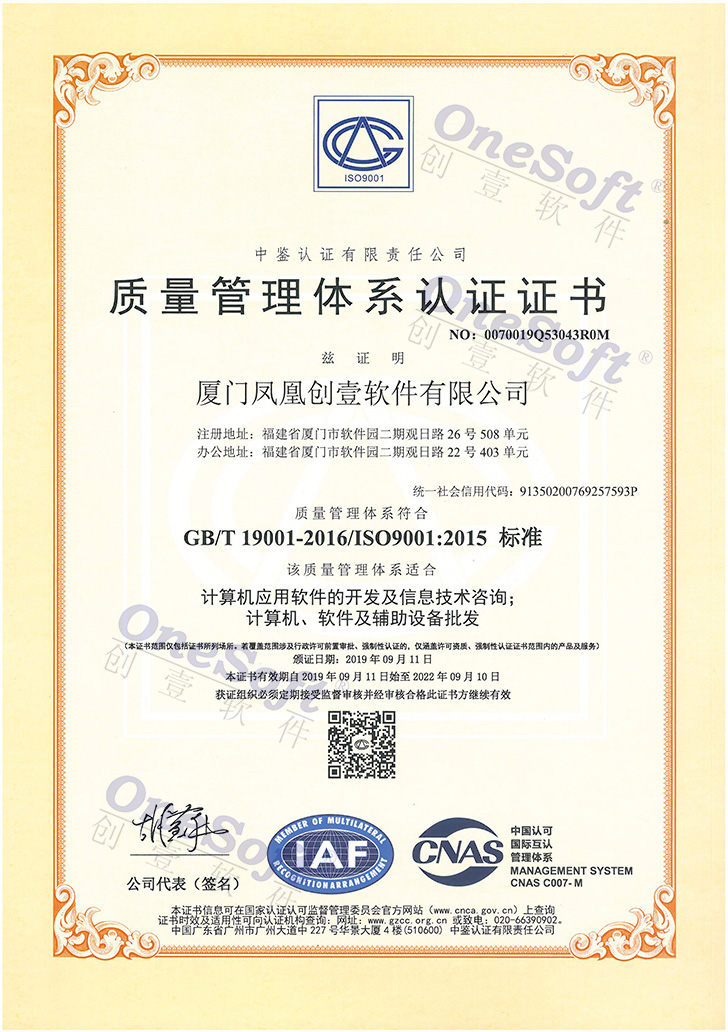 質(zhì)量管理體系認(rèn)證證書