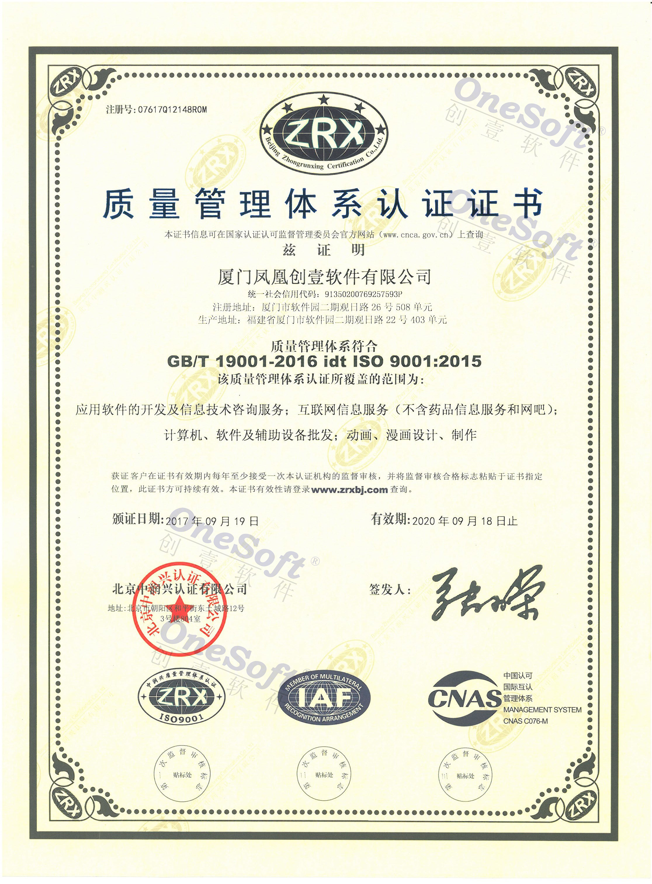 2017年質(zhì)量管理體系認(rèn)證證書