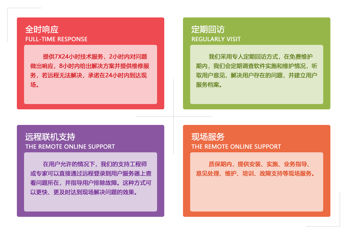 鳳凰創(chuàng)壹本著“技術(shù)創(chuàng)壹,服務(wù)創(chuàng)壹”的服務(wù)理念,認(rèn)真傾聽客戶的心聲,仔細(xì)研究客戶的需求,并在相互信任、相互尊重的基礎(chǔ)上實(shí)現(xiàn)共贏。我們竭誠為用戶提供一流的技術(shù)支持和服務(wù)。通過上門服務(wù)、電話、遠(yuǎn)程協(xié)助等方式為用戶提供完善的售前和售后咨詢服務(wù),全程負(fù)責(zé)系統(tǒng)的安裝和實(shí)施。隨時(shí)隨地提供全方位的技術(shù)支持服務(wù),為用戶及時(shí)解決后顧之憂。