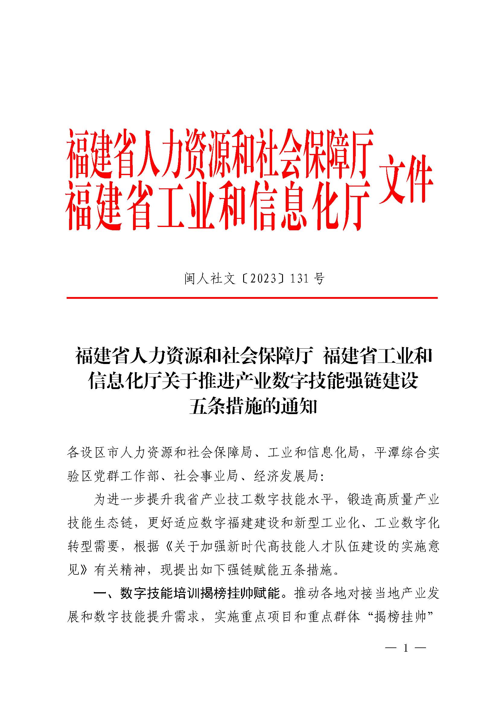 近日,福建省人力資源和社會保障廳、福建省工業(yè)和信息化廳發(fā)布《關于推進產業(yè)數(shù)字技能強鏈建設五條措施的通知》,進一步提升福建省產業(yè)技工數(shù)字技能水平,鍛造高質量產業(yè)技能生態(tài)鏈,更好適應數(shù)字福建建設和新型工業(yè)化、工業(yè)數(shù)字化轉型需要。