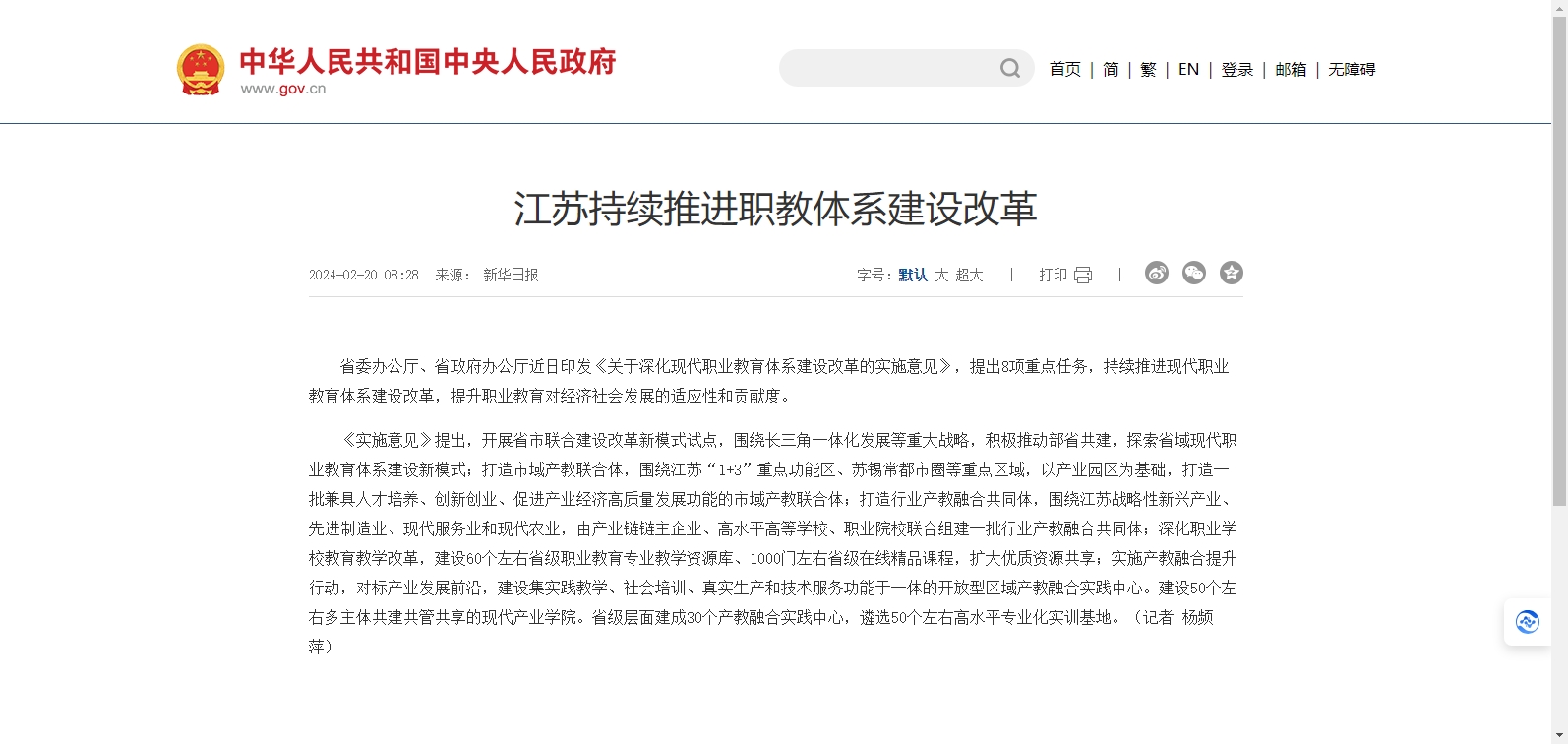 下一篇江蘇持續(xù)推進職教體系建設改革