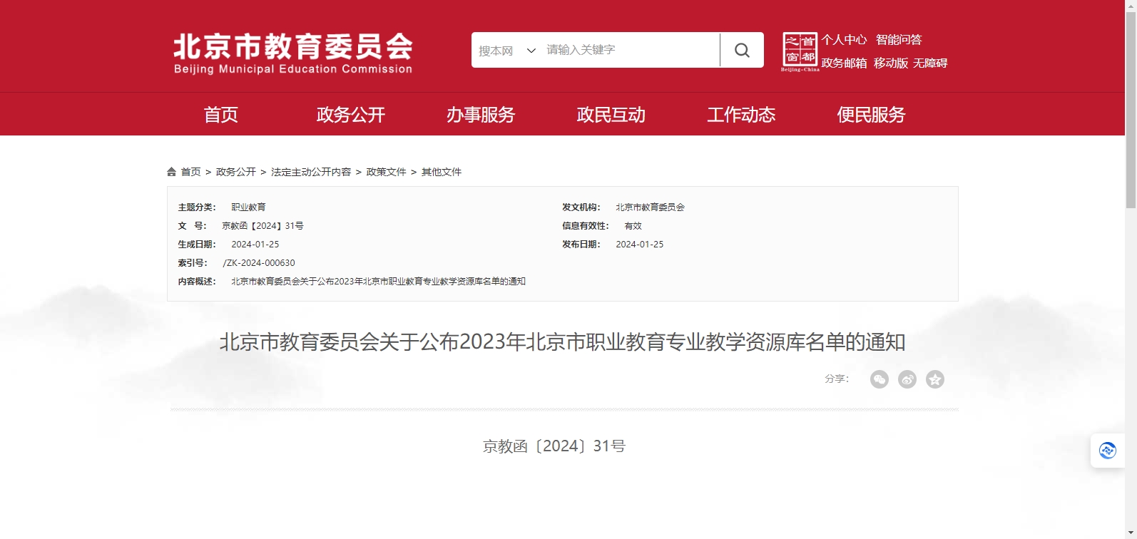 2023年北京市職業(yè)教育專業(yè)教學(xué)資源庫(kù)名單