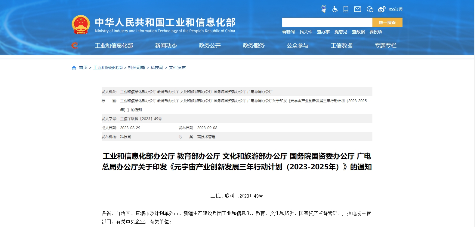 9月8日,工業(yè)和信息化部辦公廳、教育部辦公廳、文化和旅游部辦公廳、國(guó)務(wù)院國(guó)資委辦公廳、廣電總局辦公廳印發(fā)《元宇宙產(chǎn)業(yè)創(chuàng)新發(fā)展三年行動(dòng)計(jì)劃(2023-2025年)》。