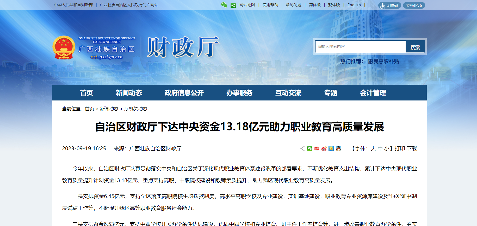 從廣西壯族自治區(qū)財(cái)政廳獲悉,今年以來(lái),自治區(qū)財(cái)政廳累計(jì)下達(dá)中央現(xiàn)代職業(yè)教育質(zhì)量提升計(jì)劃資金13.18億元,重點(diǎn)支持高職、中職院校建設(shè)和教師素質(zhì)提升,助力廣西現(xiàn)代職業(yè)教育高質(zhì)量發(fā)展。