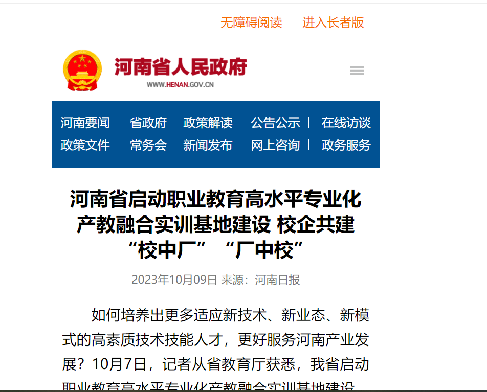 對(duì)立項(xiàng)建設(shè)的“河南省職業(yè)教育高水平專業(yè)化產(chǎn)教融合實(shí)訓(xùn)基地”,省財(cái)政廳、省教育廳將給予專項(xiàng)資金支持。