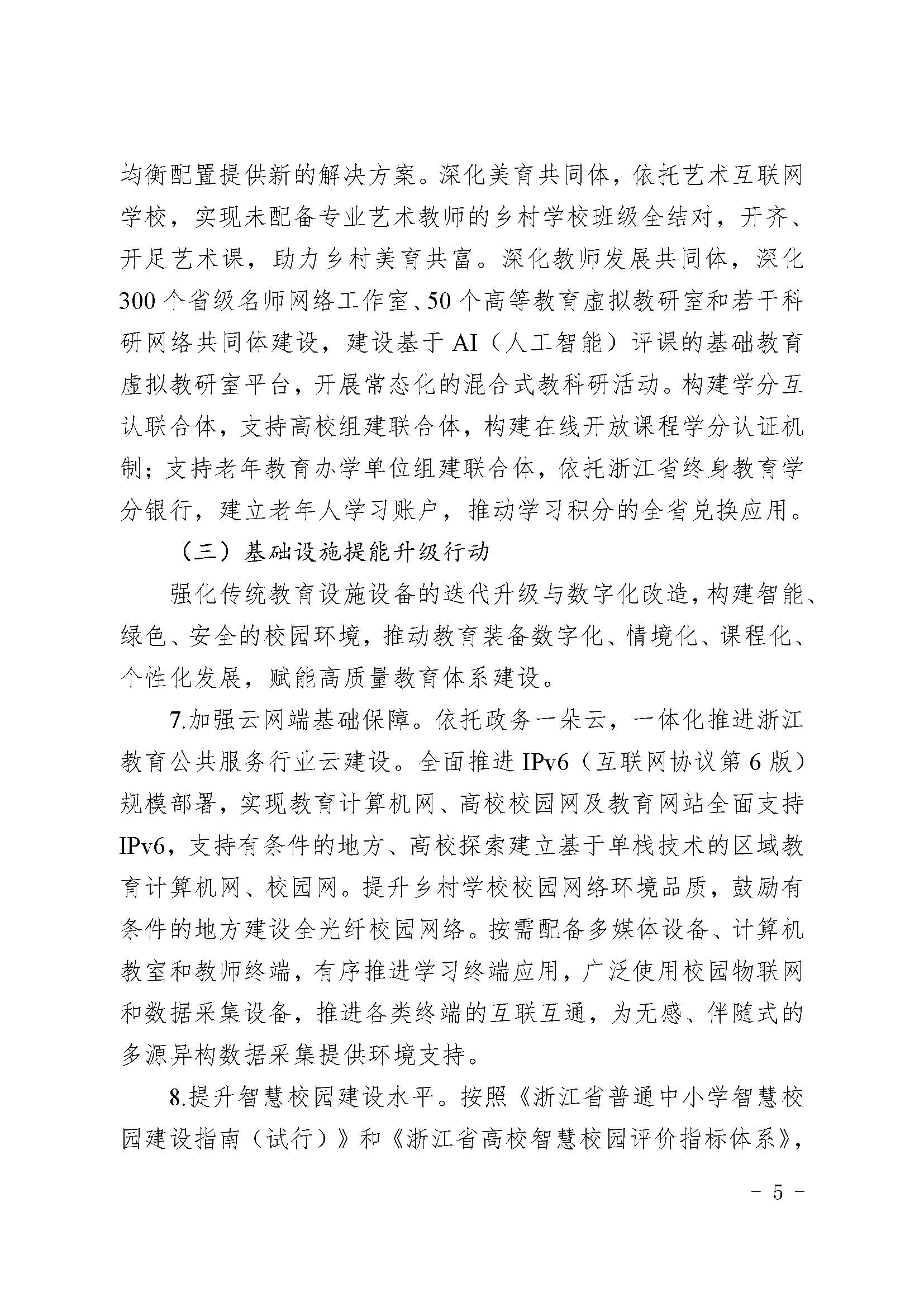 近日,浙江省教育廳官網(wǎng)發(fā)布關(guān)于印發(fā)《浙江省數(shù)字教育高質(zhì)量發(fā)展行動計劃(2024-2027年)》的通知,在高質(zhì)量發(fā)展建設(shè)共同富裕示范區(qū)背景下,以立德樹人為根本任務(wù),堅持“以教育信息化驅(qū)動引領(lǐng)教育現(xiàn)代化”的發(fā)展理念,充分發(fā)揮數(shù)字教育推進教育現(xiàn)代化的內(nèi)變量、快變量、強變量作用,統(tǒng)籌做好技術(shù)支撐、數(shù)字賦能、應(yīng)用深化、公共服務(wù)、安全保障,構(gòu)建數(shù)字教育基礎(chǔ)設(shè)施、數(shù)字教育資源應(yīng)用、教育數(shù)據(jù)開放服務(wù)、數(shù)字教育協(xié)同創(chuàng)新、教育網(wǎng)絡(luò)安全保障和數(shù)字教育發(fā)展制度等六大體系完善、結(jié)構(gòu)合理、供給充分的高質(zhì)量數(shù)字教育公共服務(wù)體系,支持公平包容、更有質(zhì)量、適合人人、綠色發(fā)展、開放合作的數(shù)字教育生態(tài)。到2027年,形成在國內(nèi)處于領(lǐng)先水平、在國際具有影響力的數(shù)字教育高地,助推中國式現(xiàn)代化教育示范省建設(shè)。