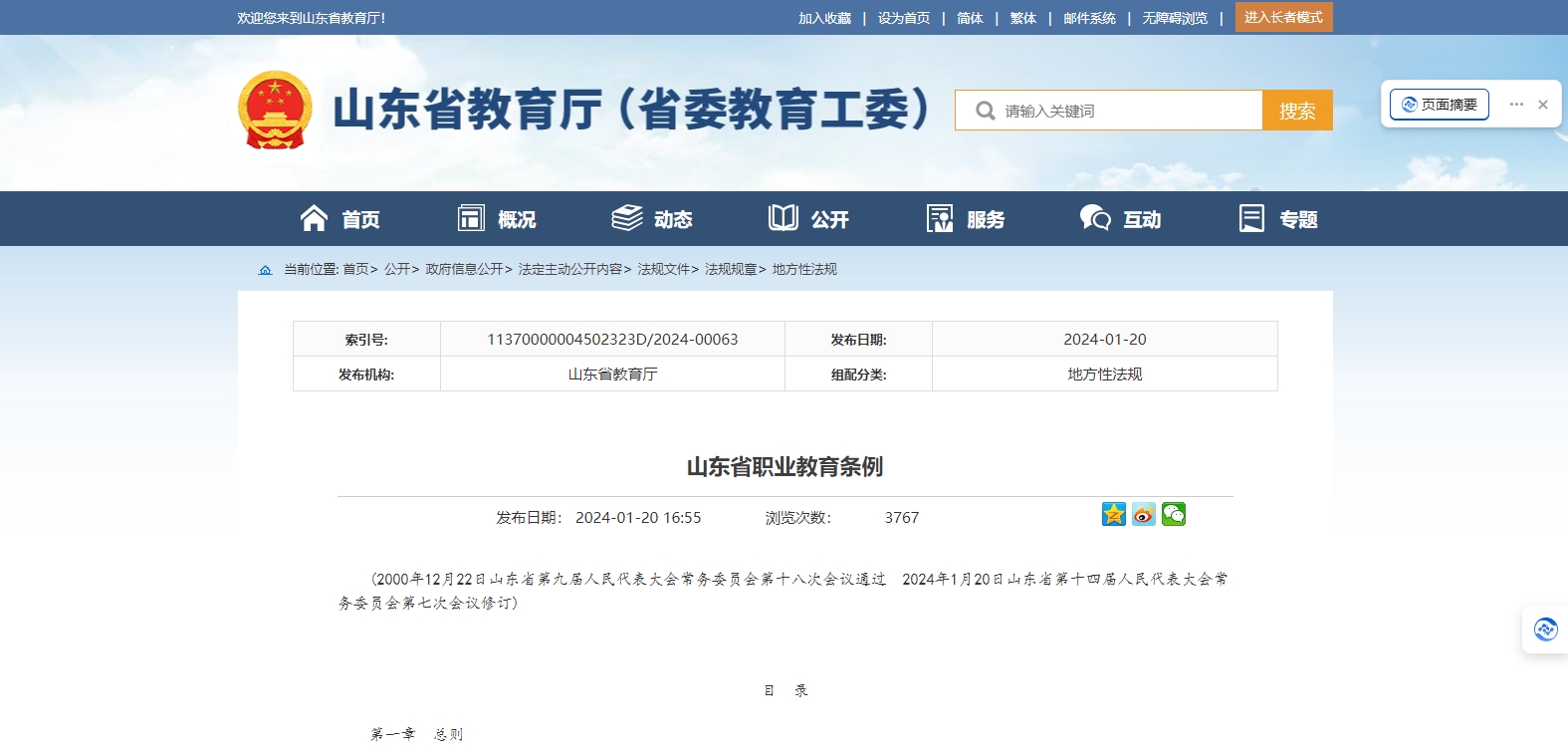 第一條 為了推動(dòng)職業(yè)教育高質(zhì)量發(fā)展,提高勞動(dòng)者素質(zhì)和技術(shù)技能水平,促進(jìn)就業(yè)創(chuàng)業(yè),建設(shè)教育強(qiáng)省、人力資源強(qiáng)省和技能型社會(huì),推進(jìn)新時(shí)代社會(huì)主義現(xiàn)代化強(qiáng)省建設(shè),根據(jù)《中華人民共和國(guó)職業(yè)教育法》等法律、行政法規(guī),結(jié)合本省實(shí)際,制定本條例。