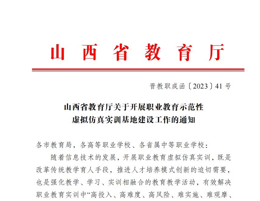 山西省教育廳發(fā)布關(guān)于開展職業(yè)教育示范性虛擬仿真實(shí)訓(xùn)基地建設(shè)工作的通知