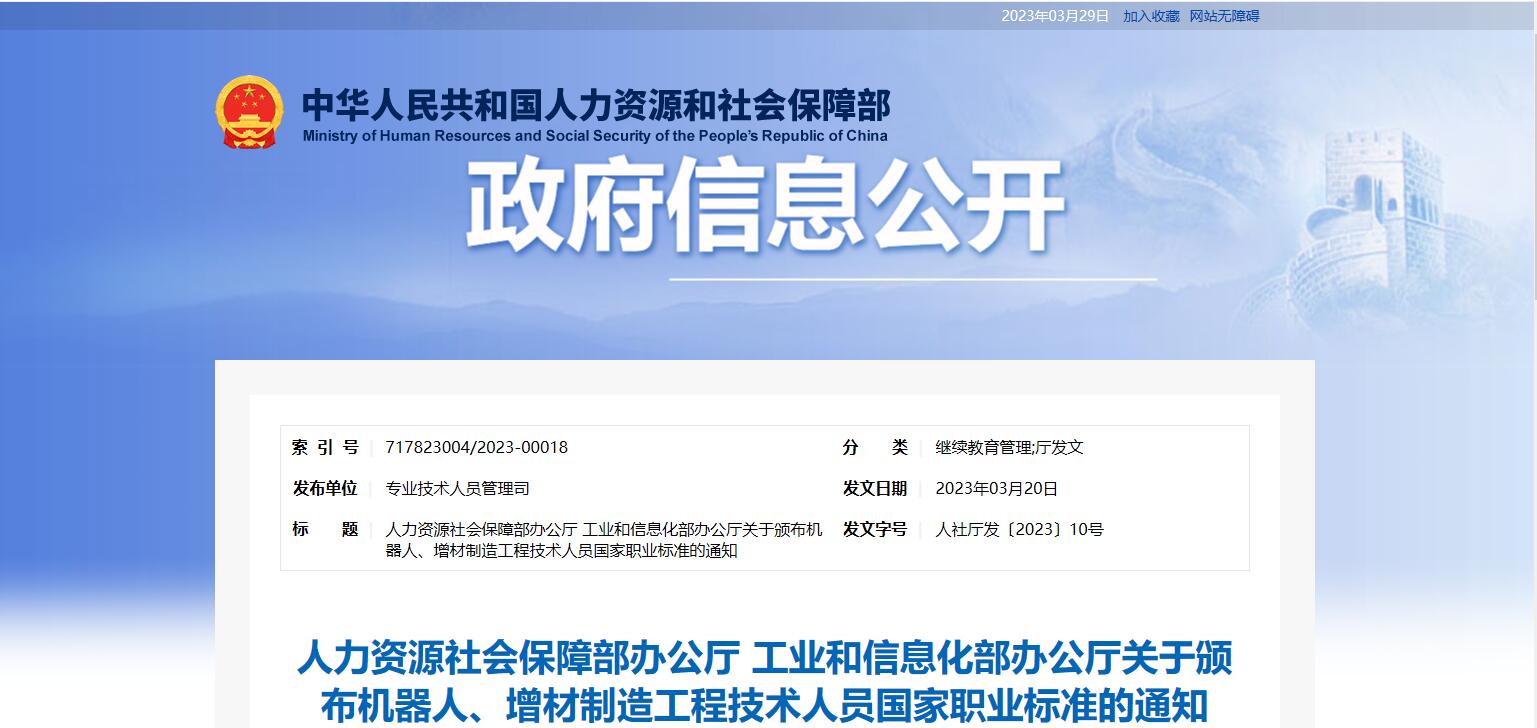 機器人、增材制造工程技術(shù)人員等4個國家職業(yè)標(biāo)準(zhǔn)頒布