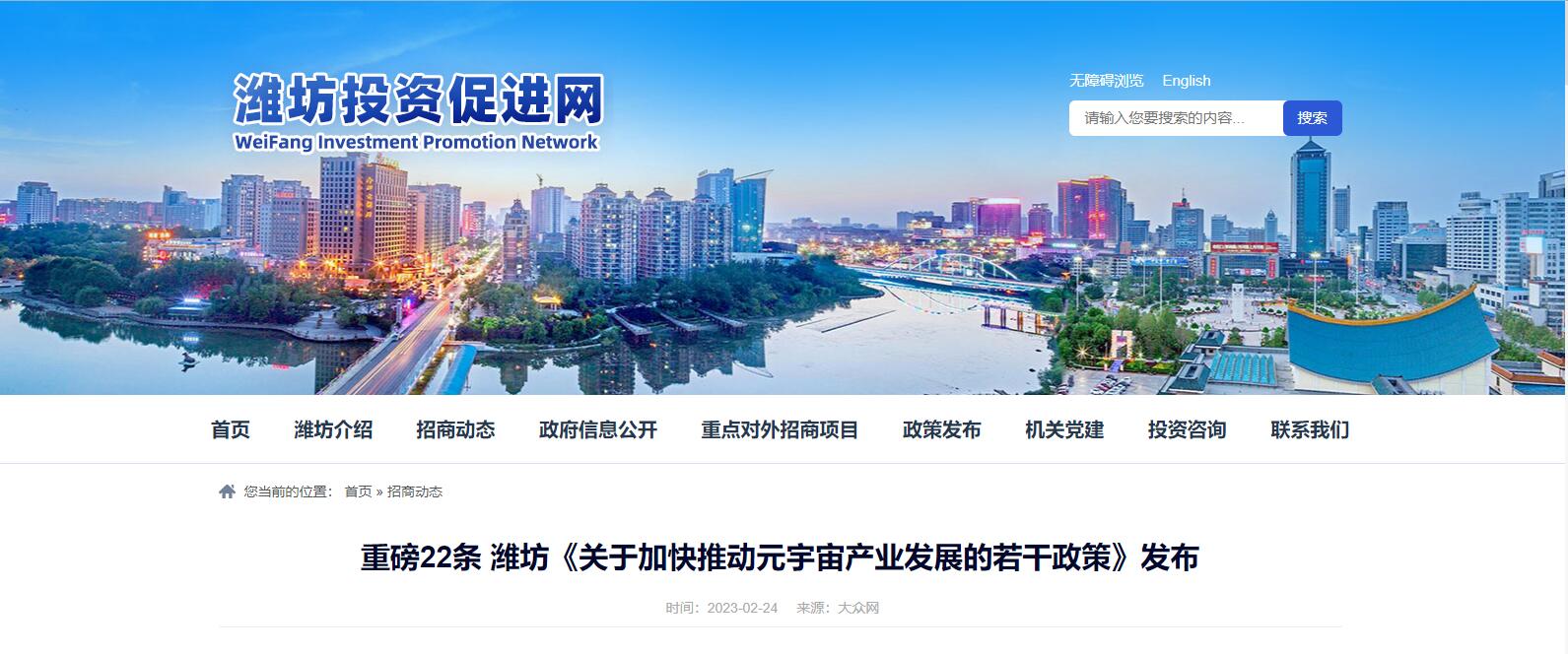 重磅22條 濰坊《關(guān)于加快推動元宇宙產(chǎn)業(yè)發(fā)展的若干政策》發(fā)布