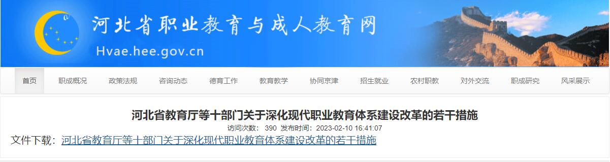 河北省教育廳等十部門發(fā)布關于深化現(xiàn)代職業(yè)教育體系建設改革的若干措施