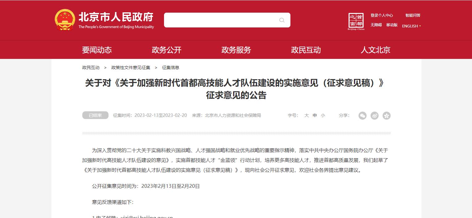 北京市近日發(fā)布《關于加強新時代首都高技能人才隊伍建設的實施意見(征求意見稿)》,提出21條建設高技能人才隊伍的舉措。其中明確推動職業(yè)學校畢業(yè)生在就業(yè)、招聘、職稱評審等方面與普通高校畢業(yè)生享受同等待遇。