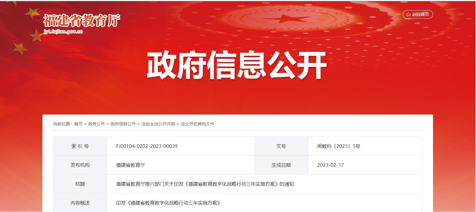 福建省教育廳等六部門關于印發(fā)《福建省教育數(shù)字化戰(zhàn)略行動三年實施方案》的通知
