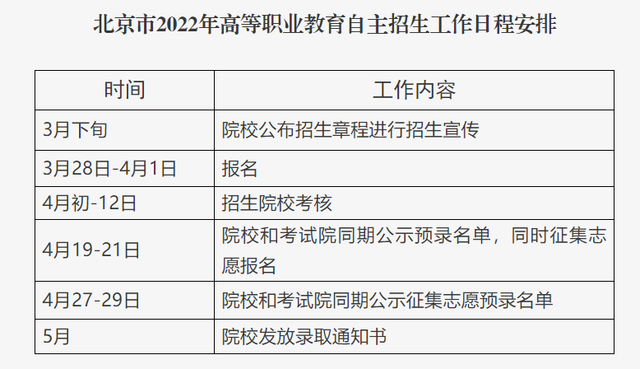 3月28日,北京市高等職業(yè)教育自主招生報(bào)名正式啟動(dòng)。 (招生工作日程安排截圖) 北京教育考試院要......